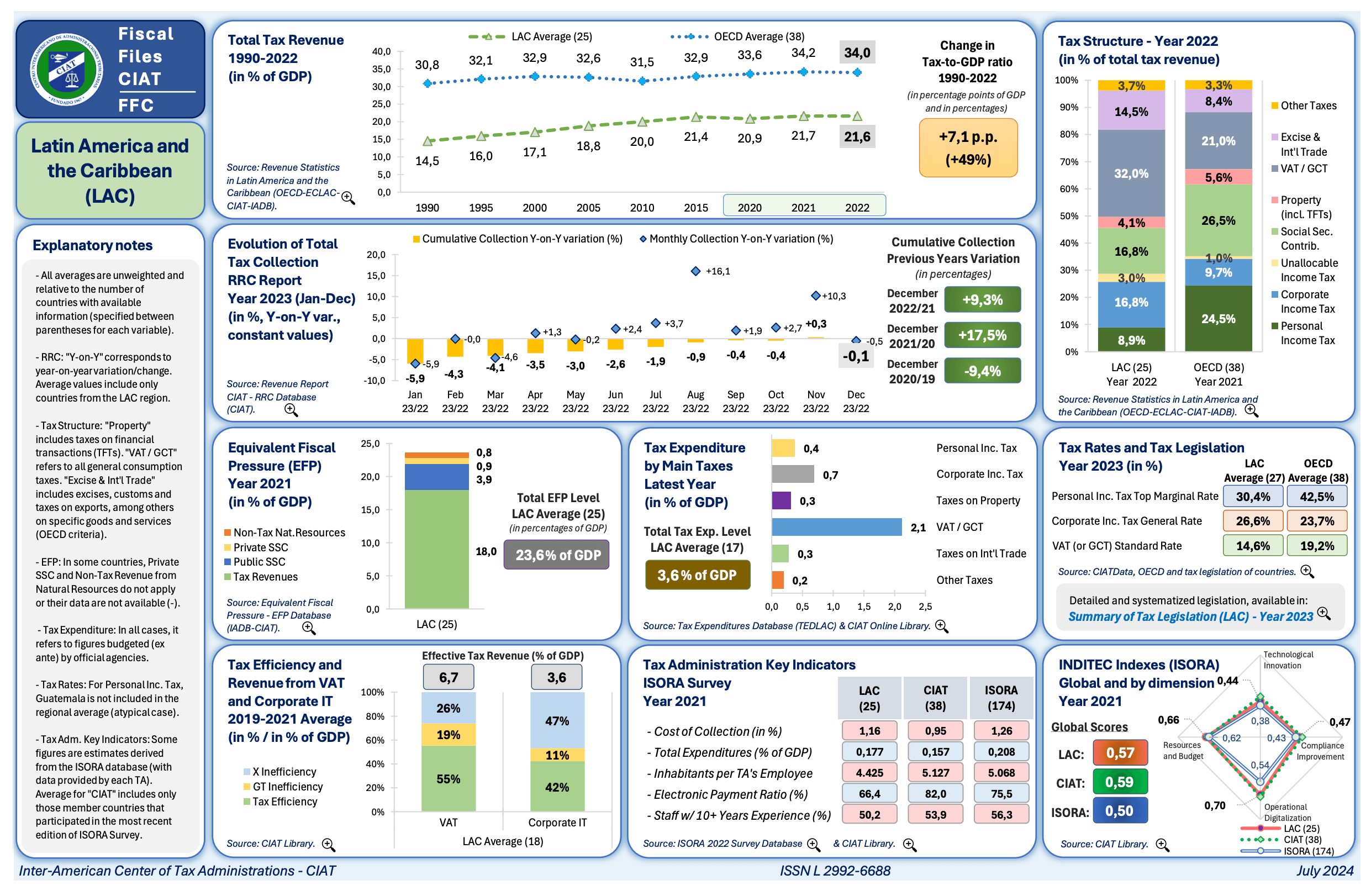 It is enough to observe the fiscal files to note that, since 1990, the tax burden in the region has registered a remarkable increase of seven points, equivalent to about 50%. Or the importance of indicators such as the cost of collection, 0.95 cents per dollar; or the level of technological maturity of tax administrations, where the countries of Latin America and the Caribbean reach 0.57, close to 0.59 of all member countries, and much higher than the world average.