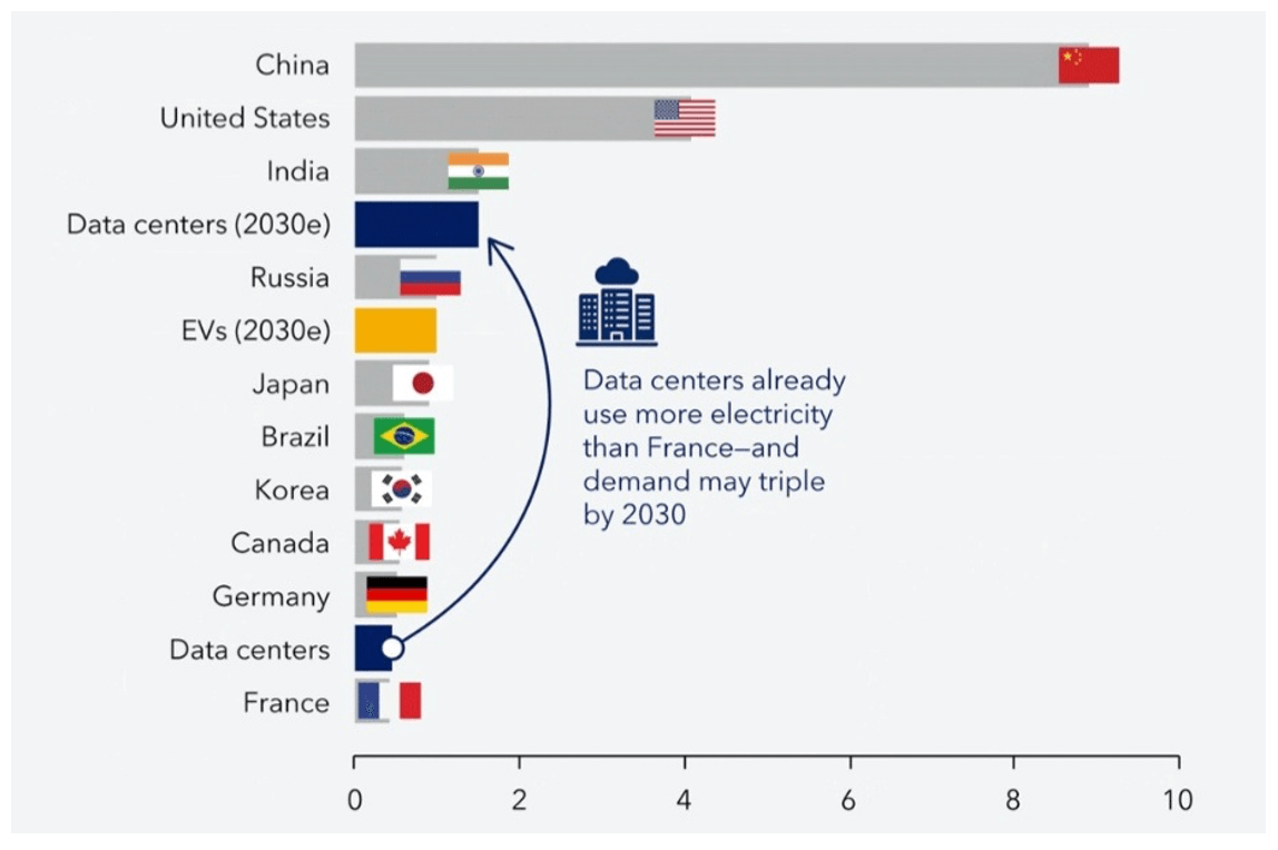 By 2023, according to Figure 1, all data centers combined used as much energy as some of the world’s largest economies. By 2030, stimulated mainly by AI, the global demand for electricity for data centers will exceed the total demand of countries such as Russia, Brazil, and Japan.