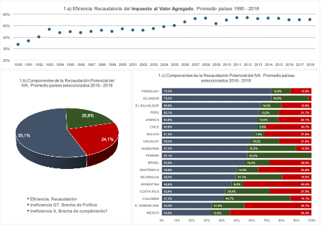 El sub-gráfico (1.c), muestra estáticamente la composición de la recaudación teórica del IVA a nivel de país.
