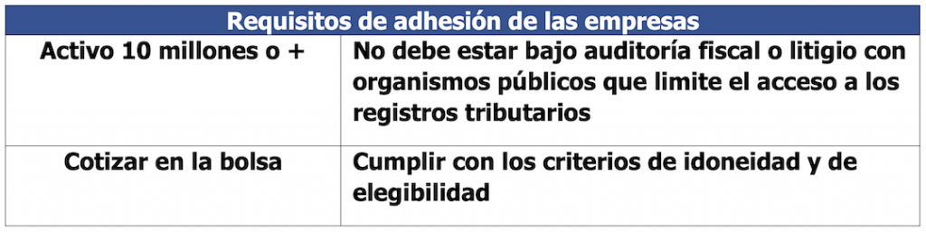 Esta categoría del cumplimiento cooperativo, que se basa en la adhesión voluntaria, el objetivo fue el control de las grandes empresas multinacionales con operaciones complejas y los beneficios a obtener, por ambos sujetos de la obligación tributaria eran claros: 1) para la AT obtener en un marco de transparencia información idónea para mejorar el control y 2) para las empresas: a) lograr una disminución del costo administrativo, b) obtener la certeza jurídica de las liquidaciones impositivas efectuadas c) la resolución expedita de sus consultas a través de un equipo con alto nivel técnico y d) mejorar su imagen fiscal al ser aceptada entre los contribuyentes más confiables.