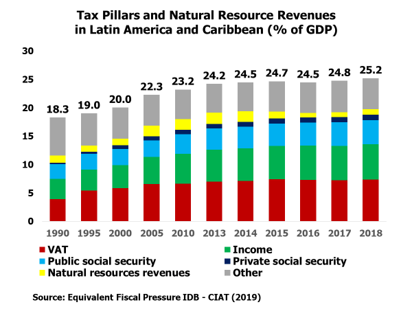 In personal income tax (PIT), there is certainly substantial space in most countries of the region. Moreover, it would be worth considering (where this does not exist) moving to global income tax base by taking advantage of the international push toward transparency. On the other hand, in some jurisdictions it is likely that this tax, coupled to social security contributions, exerts pressure on available revenue, affecting national savings and formal employment. Finally, the COVID 19 surcharge on public officials’ salaries and on pensions (defining a threshold) must be a temporary solution. It is more equitable and efficient, for example, to update payment schemes through a “centralized salary scale” system.