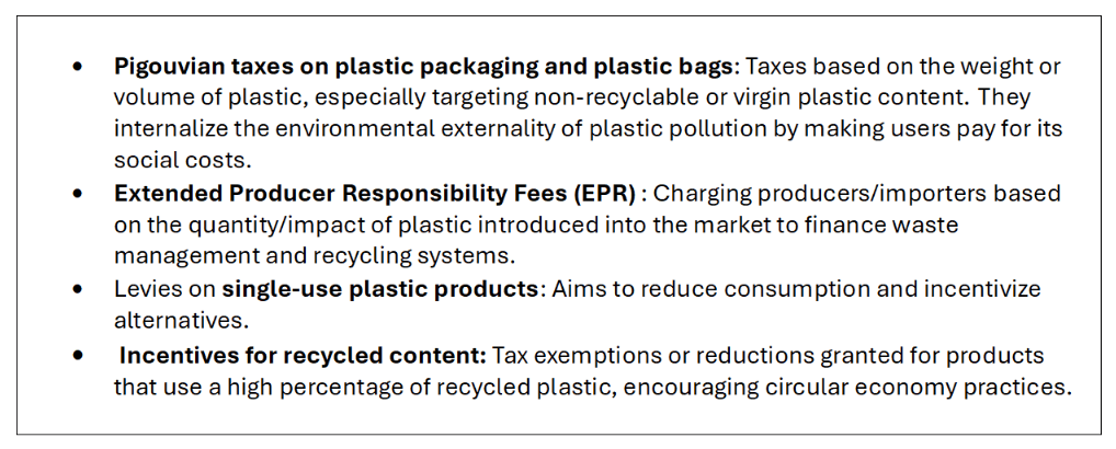 The implementation of plastics taxes often coincides with the implementation of environmental levies on REP products and systems, linking fiscal instruments to mandatory recycling targets. However, global efforts remain fragmented. The increasing diversity of national policies, although progressive, shows the challenge of coordinating a global unified response[i]. Increased regional and global cooperation- including financial mechanisms, technology transfer and regulatory harmonization- is needed to amplify impact.